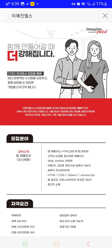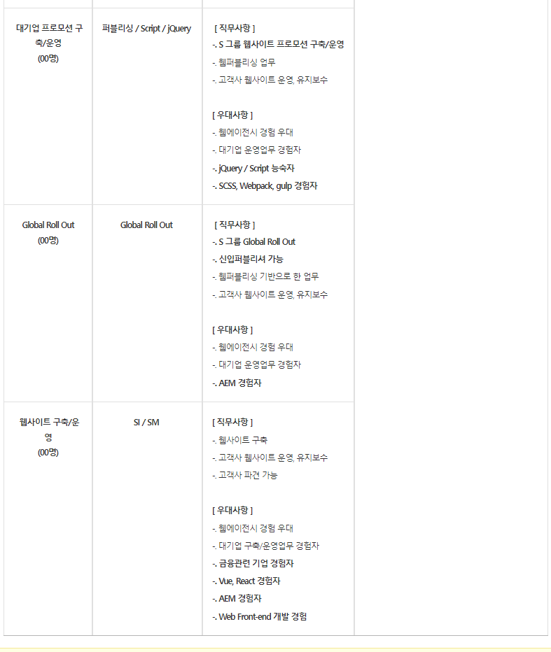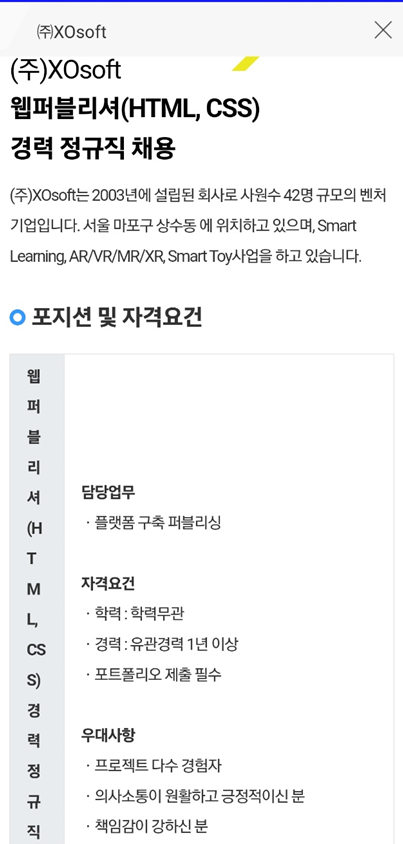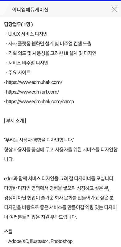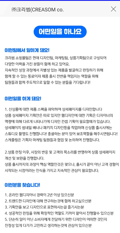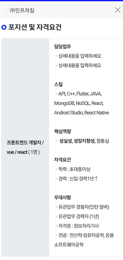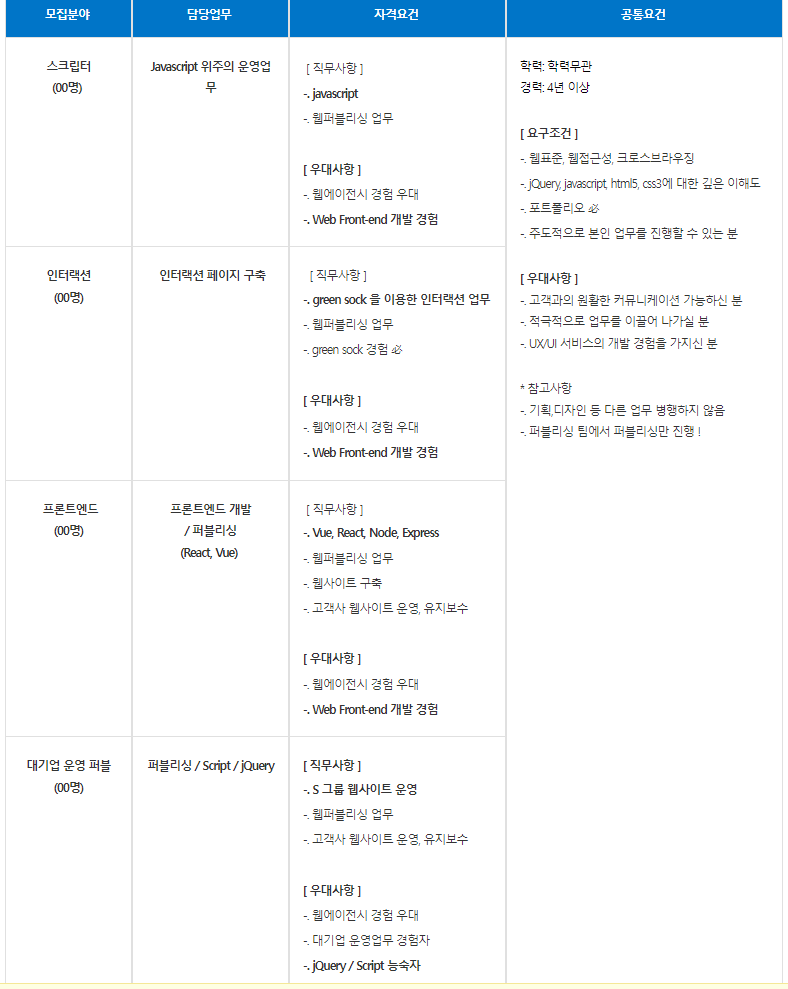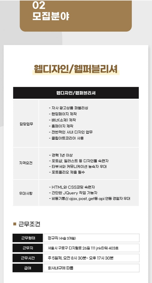 웹(UI/UX)디자이너&웹퍼블리셔 구인광고 샘플 참고하기