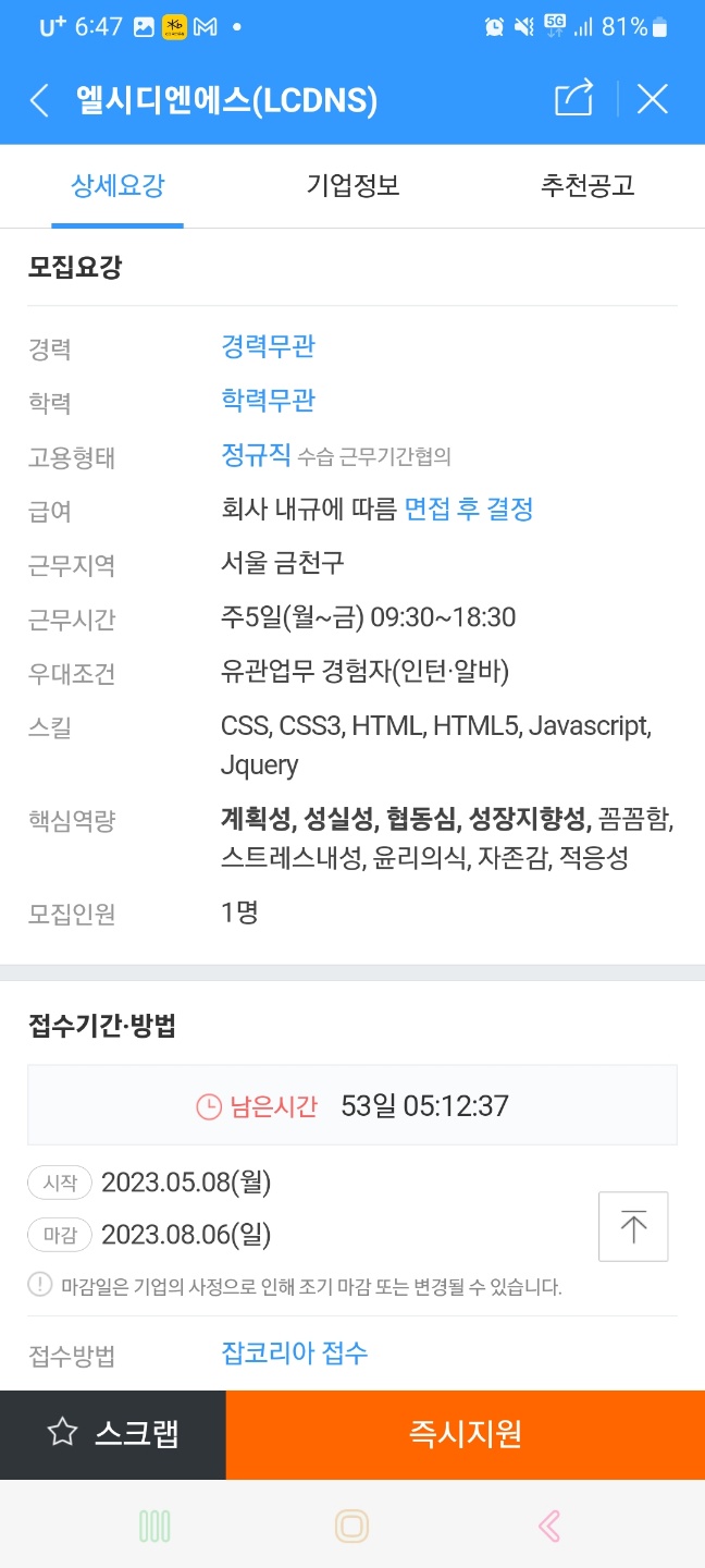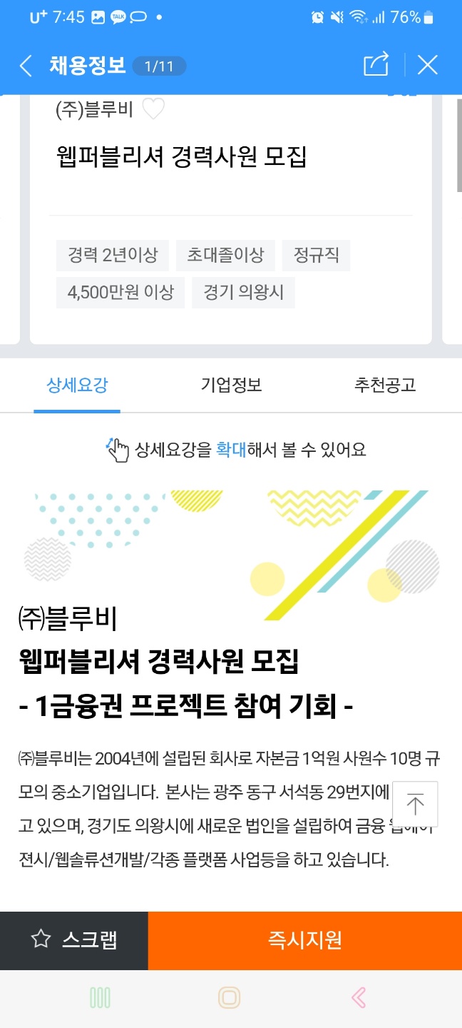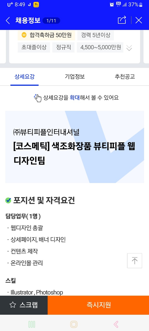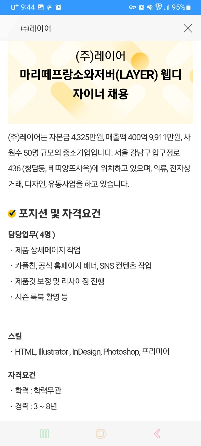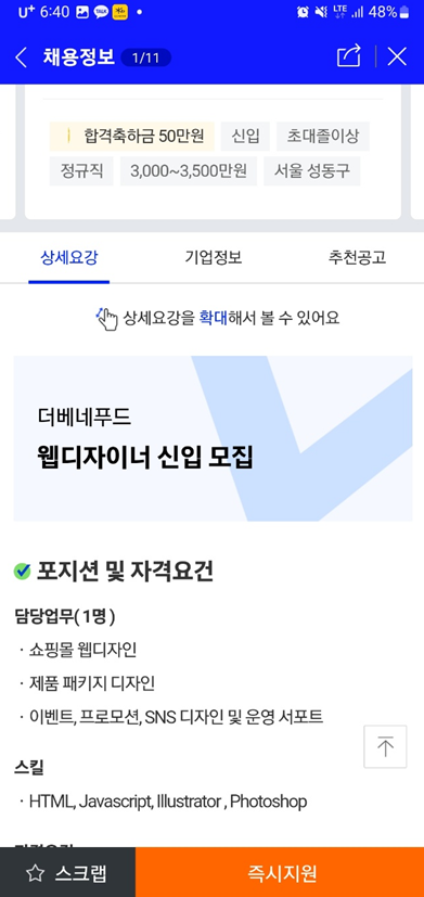 웹(UI/UX)디자이너&웹퍼블리셔 구인광고 샘플 참고하기