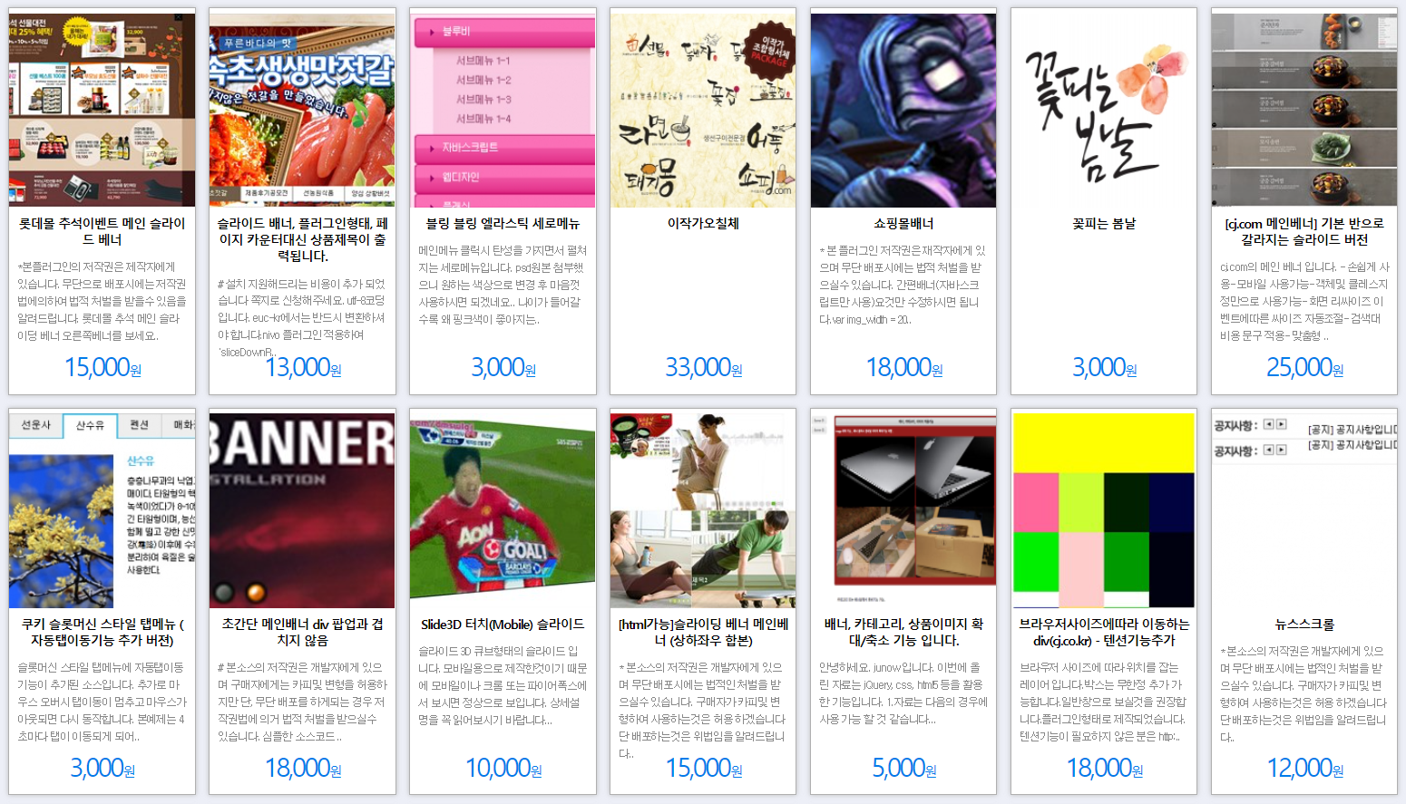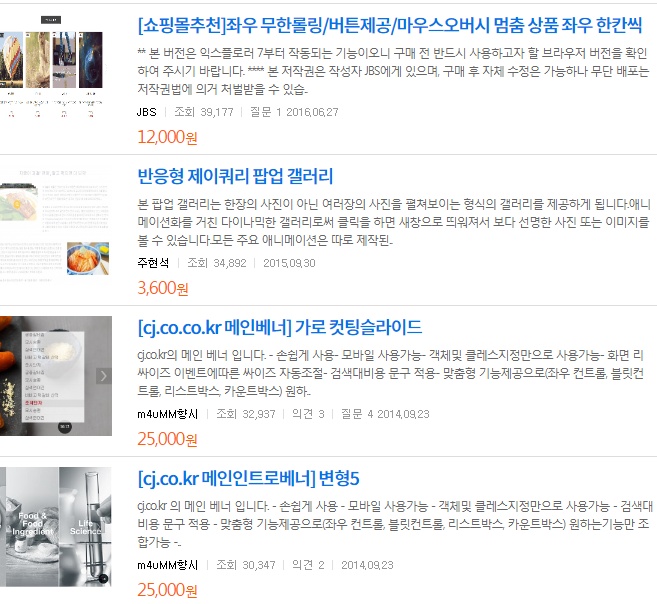 [다양햔 템플릿 모듈소스(플러그인) 종류 및 구매 가격 참고]