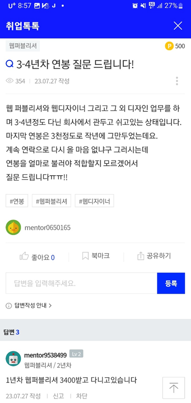 [ 웹디자이너 & 웹퍼블리셔 연봉 참고자료 ]