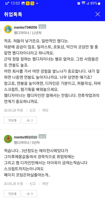 웹(UI/UX)디자이너 & 웹퍼블리셔 직종 / 디블리셔? (연봉)