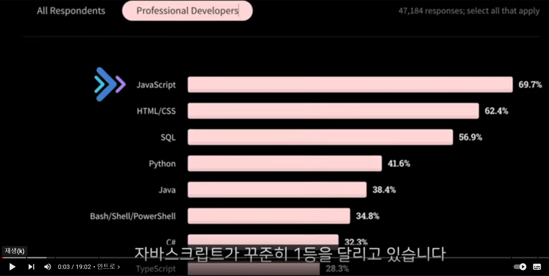 신입 웹퍼블리셔는 최소한 자바스크립트의 기본은 알고 있어야 하며, 특히 웹 분야의 개발자(프론트엔드 개발자 / 백엔드 개발자) 직종은 보다 더 깊이 있게 자바스크립트 언어를 가장 기본 스킬로 할수 있어야 한다.