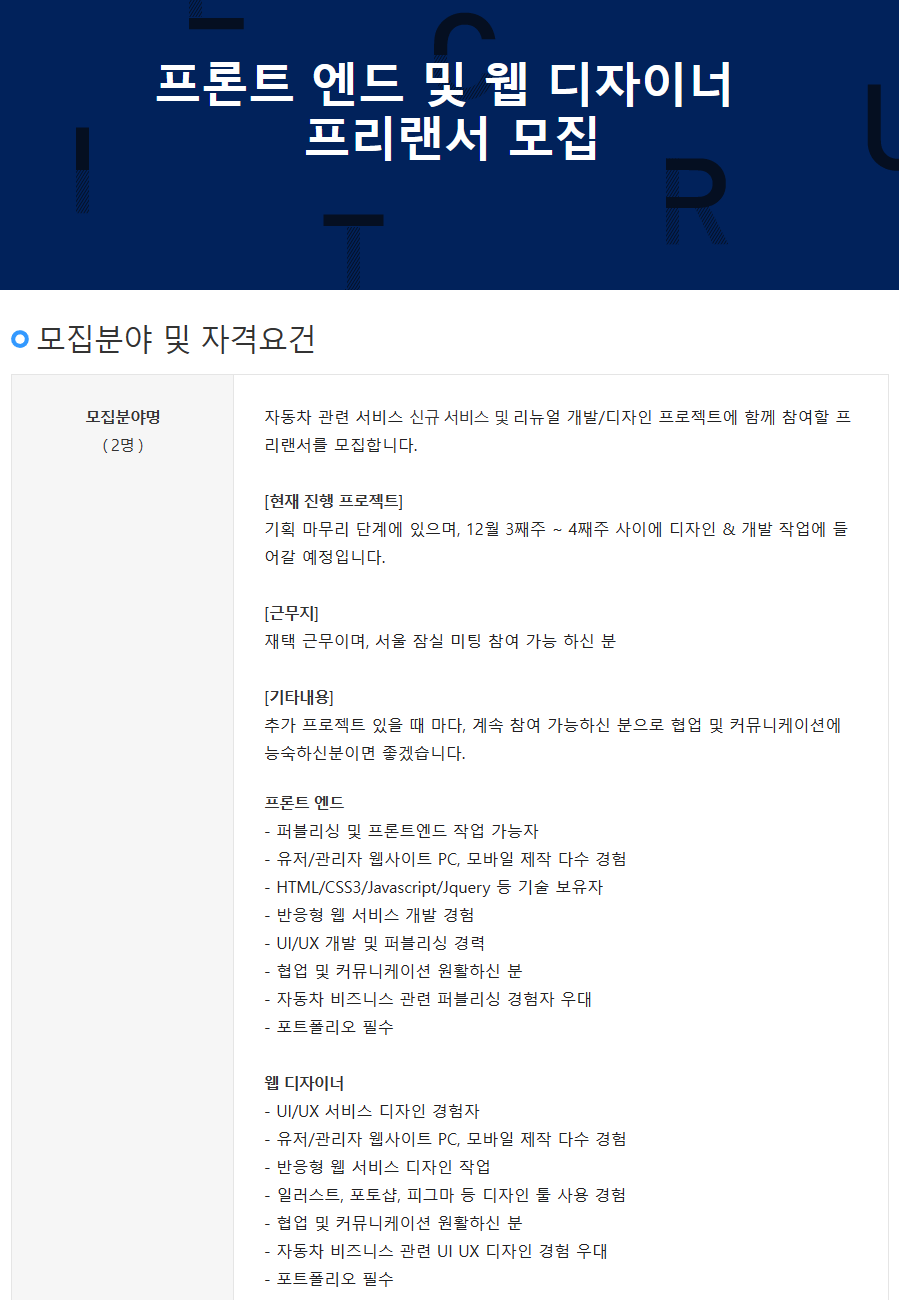 [ 웹디자이너 & 웹퍼블리셔 / 프리랜서 경력 5년 이상 ]
