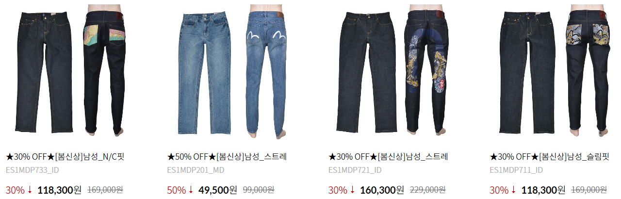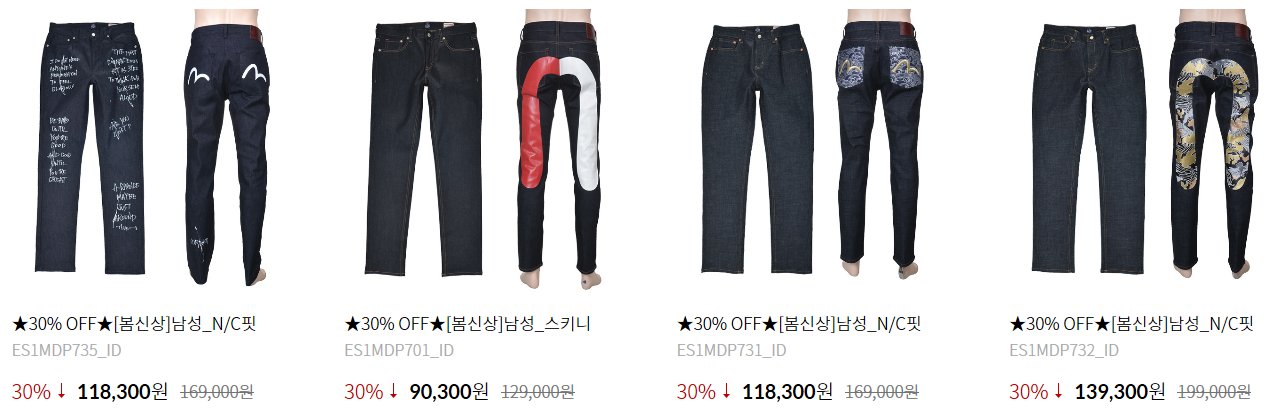 +++ 클릭!! 에비수 청바지 브랜드 기초데이터 자료 +++