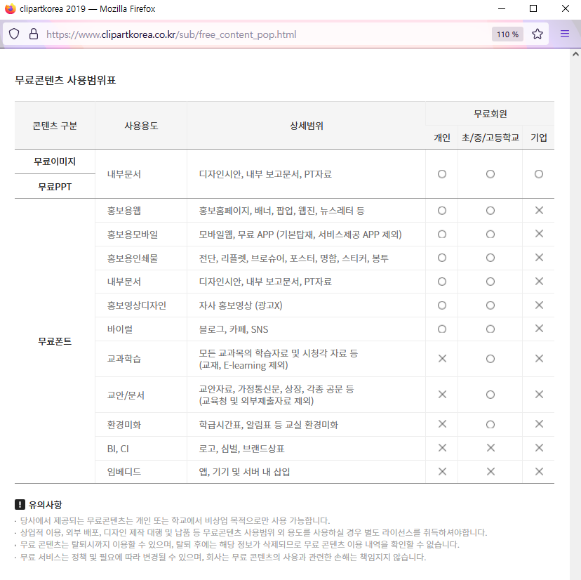 (무료회원 사용범위 유의사항)