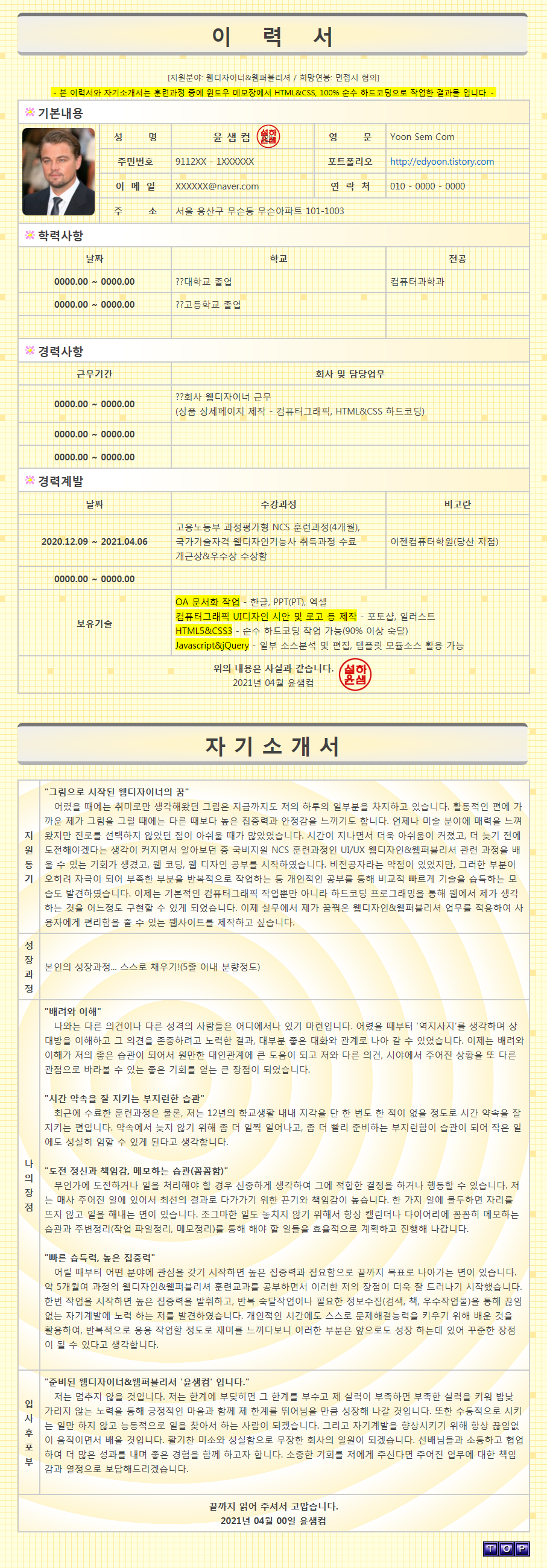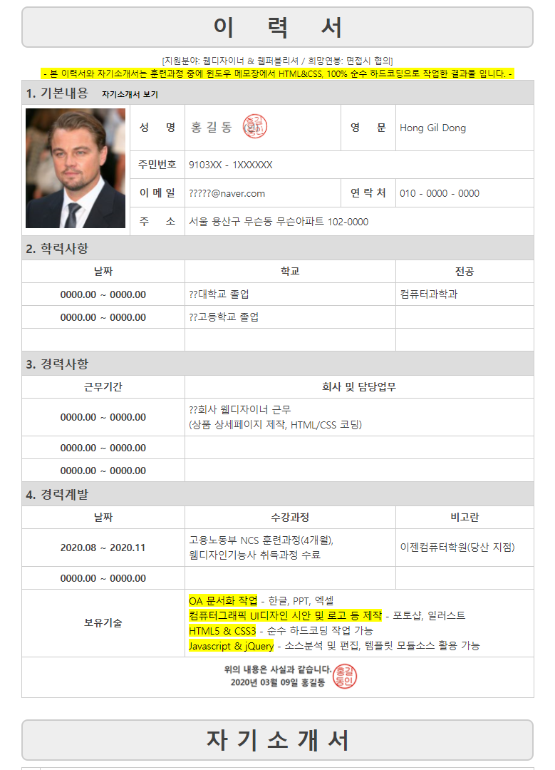 취업대비 단계별 업데이트 이력서&자기소개서 제작