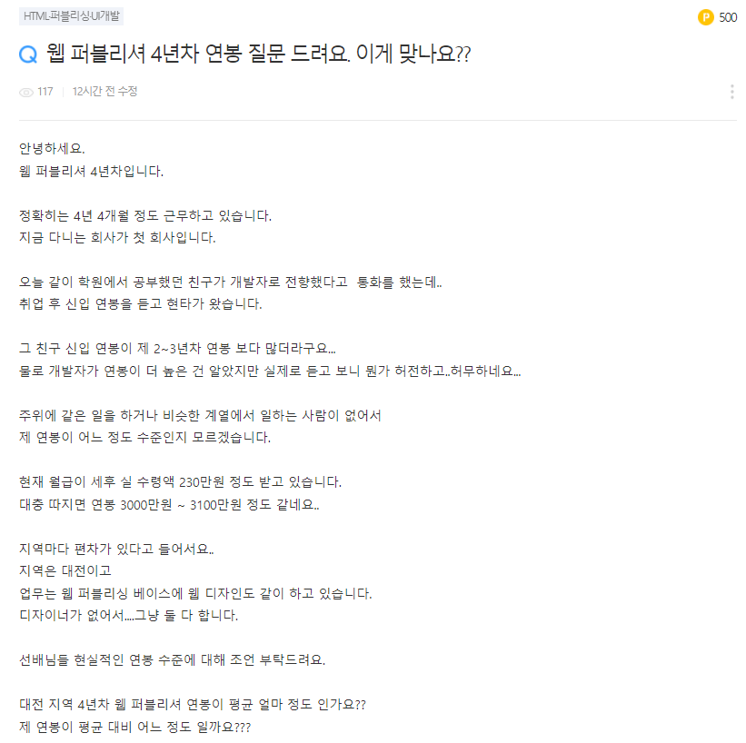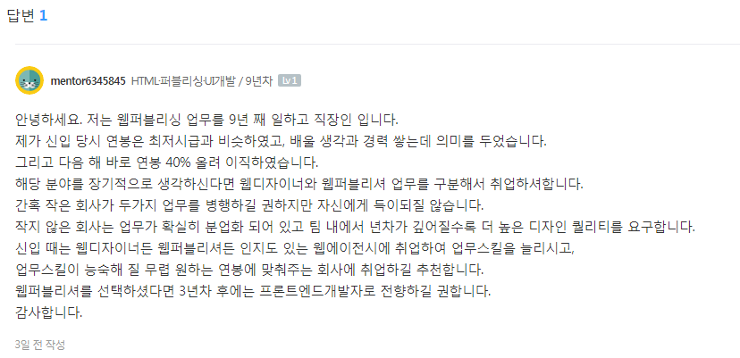 [웹퍼블리셔 경력자 연봉 책정 / 2022년 기준]