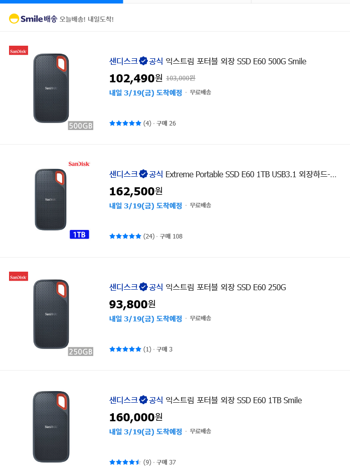 본 페이지 맨 아래에 SanDisk Extreme Portable SSD (외장 SSD) 제품소개