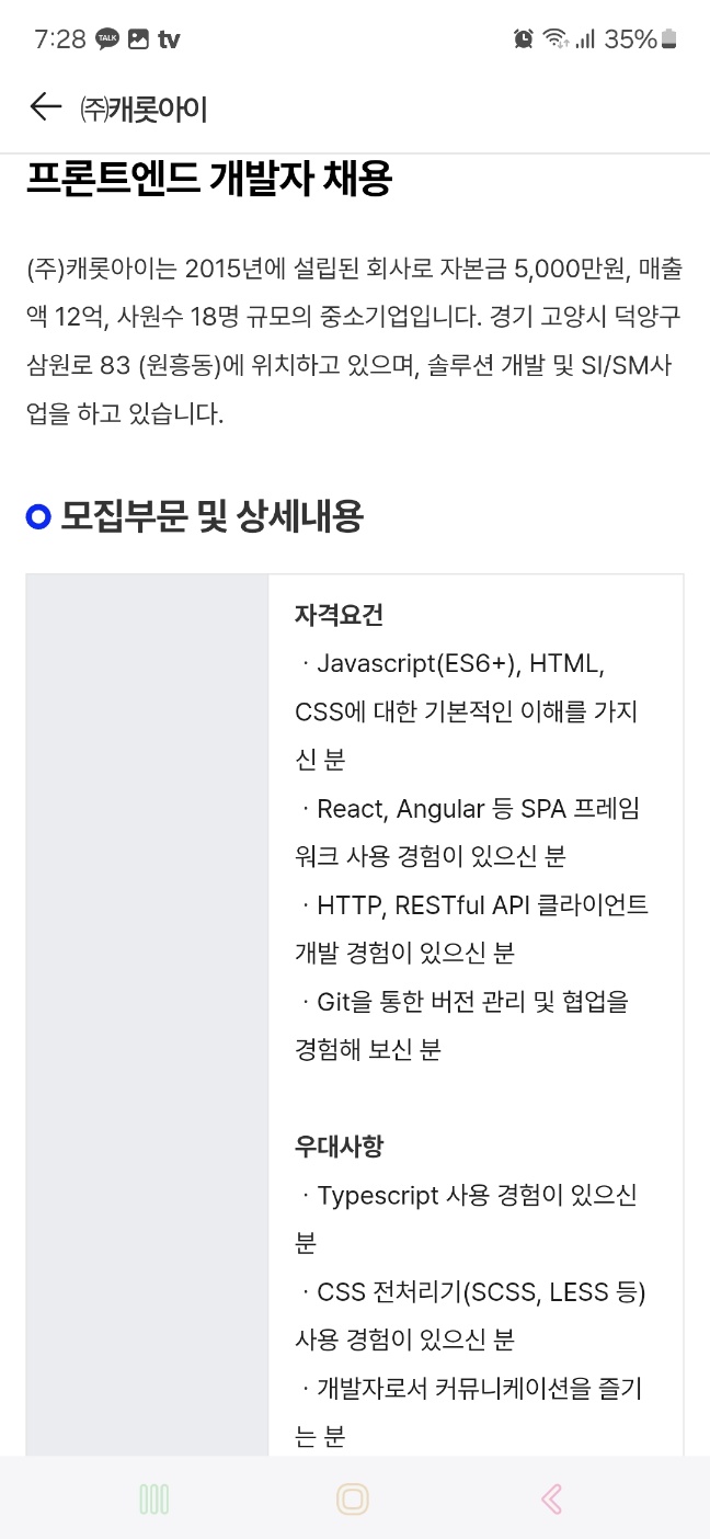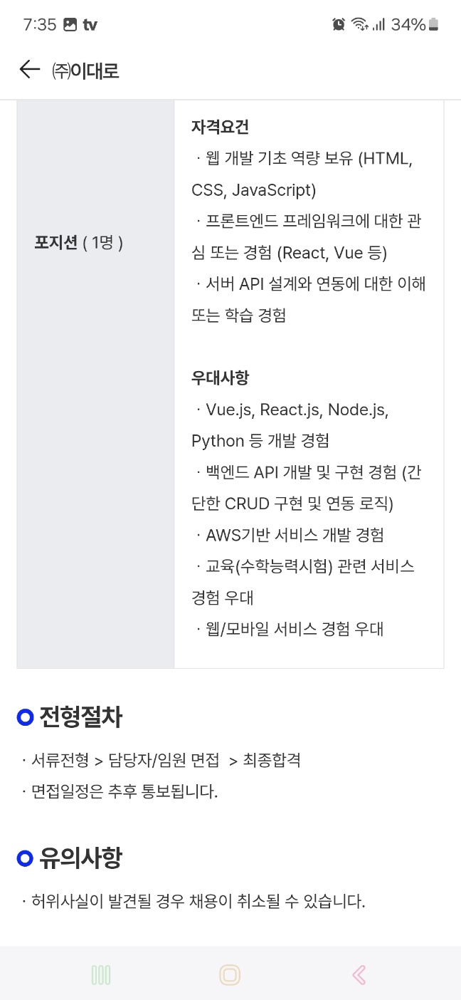 ( 프론트엔드 개발자 : 입사지원 X )
