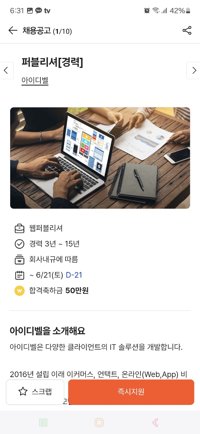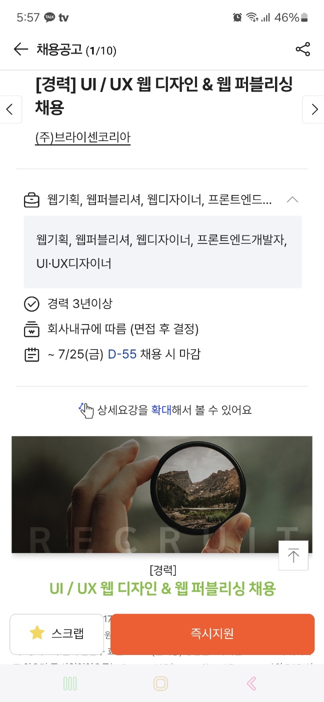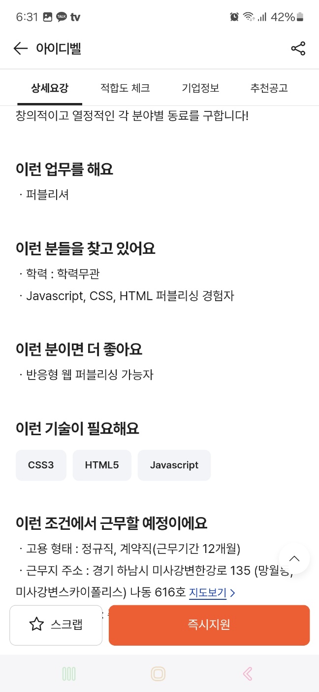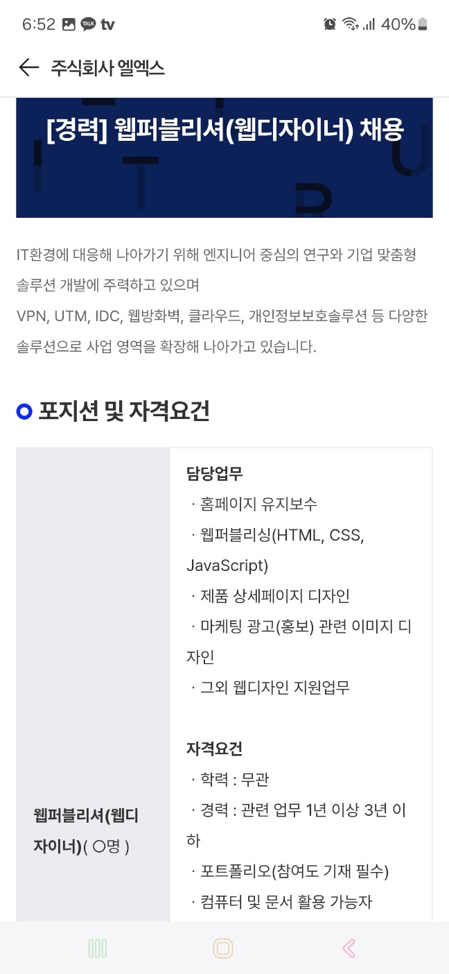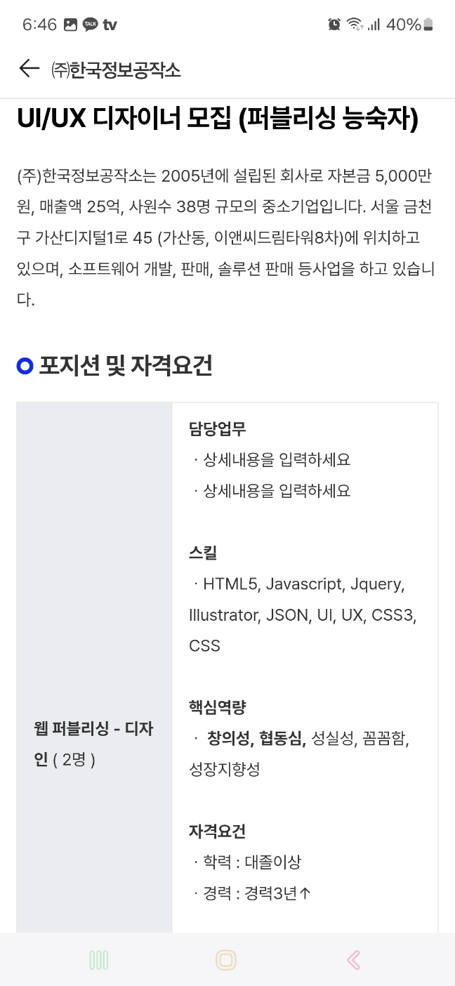 ( 프론트엔드 디자이너 : 입사지원 O )