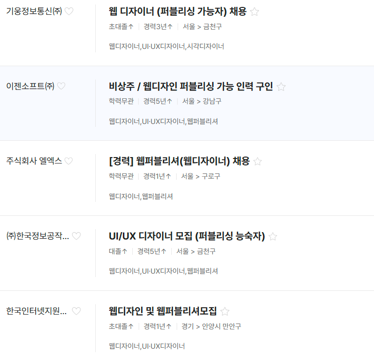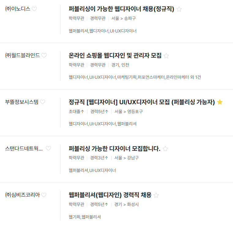 한번 결정하면 평생 관리하며 가져가야 합니다. 경력이 쌓이면서 다른 회사로 옮길때나... 나중에 프리랜서로 일할때도 웹(UI/UX)디자이너, 웹퍼블리셔 직종은 포트폴리오(꾸준히 업데이트!!) 웹사이트는 필수 입니다.