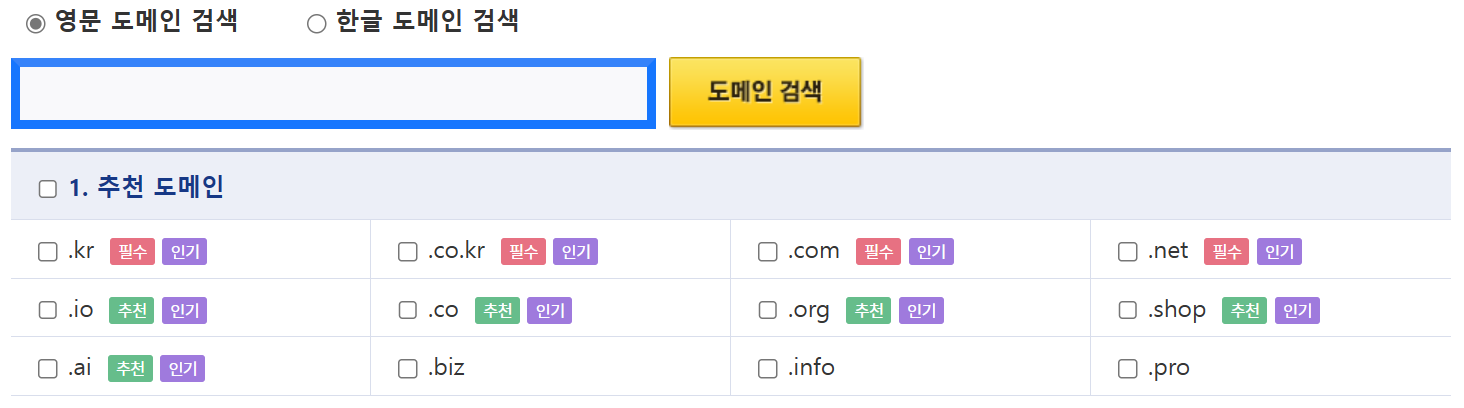 1단계: 도메인 (기억 및 입력 쉬운 것) 결정 선점하기 - 유료