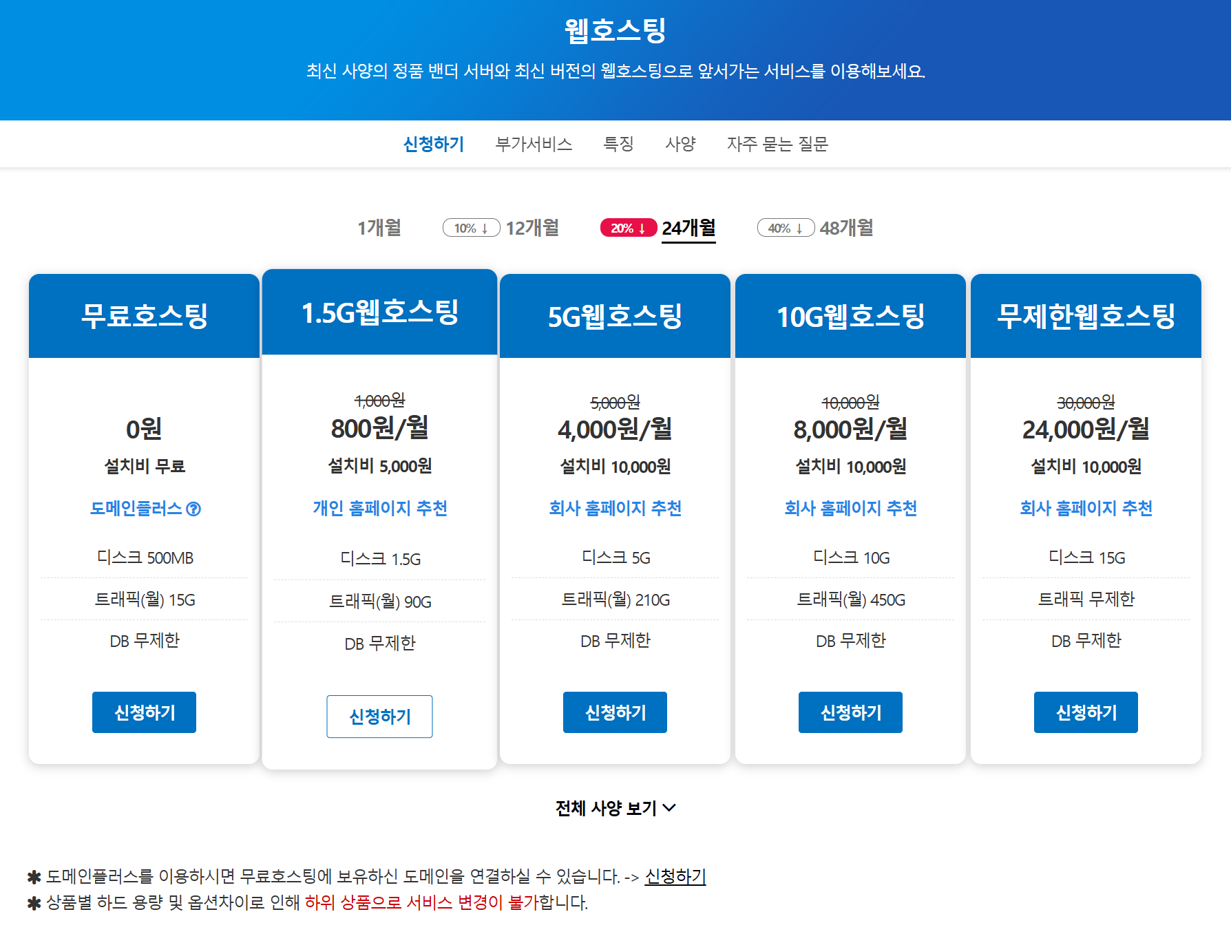 ! 유료 웹호스팅 - 도메인명과 동일하게, 최소 2년 이상 계약 권장 !