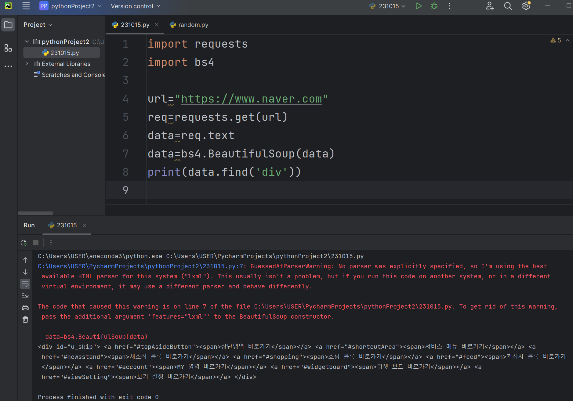 tensorflow / requests / bs4(BeautifulSoup)]