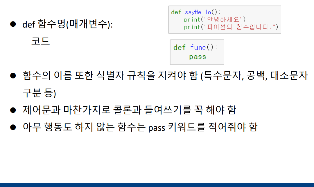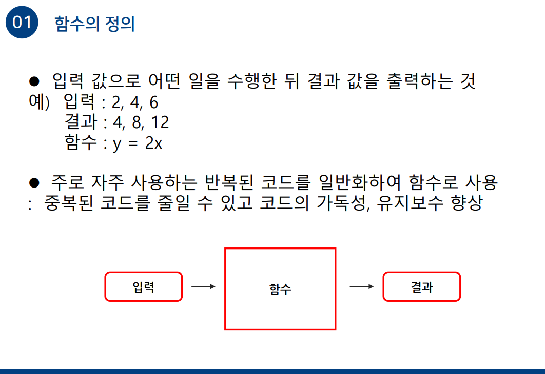 +++ 파이썬 / 함수(자바스크립트 함수와 동일 개념) +++