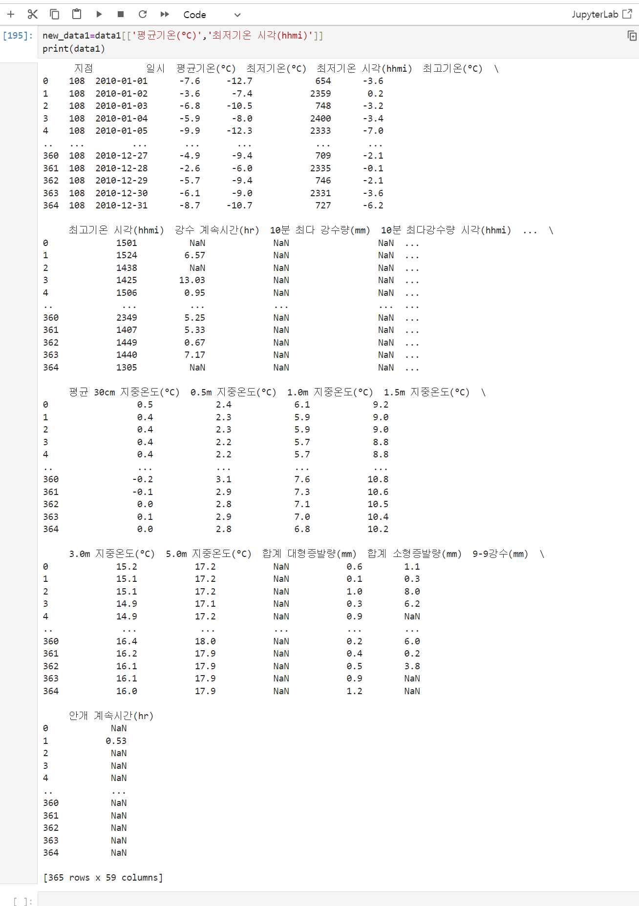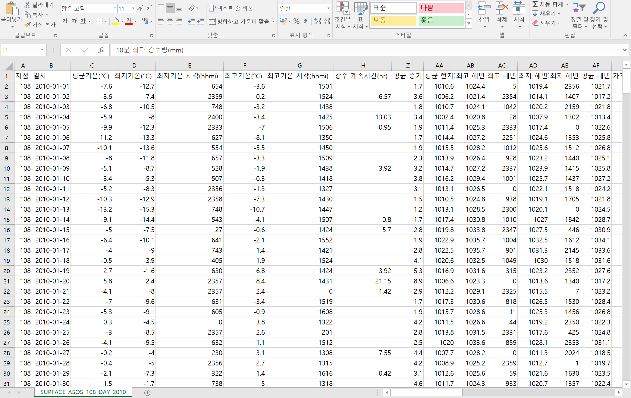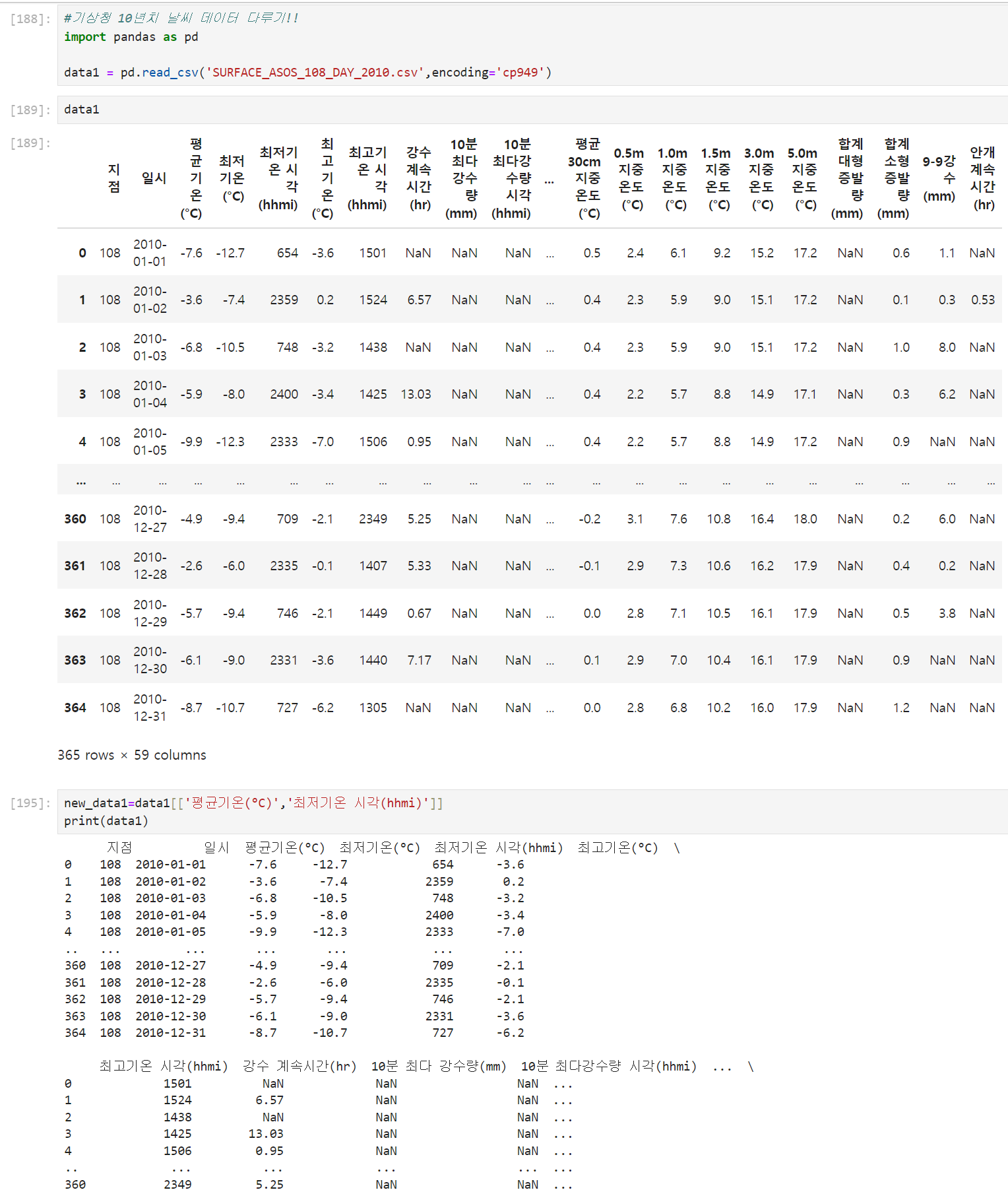 +++ 기상청 10년치 날씨 데이터 다루기 +++