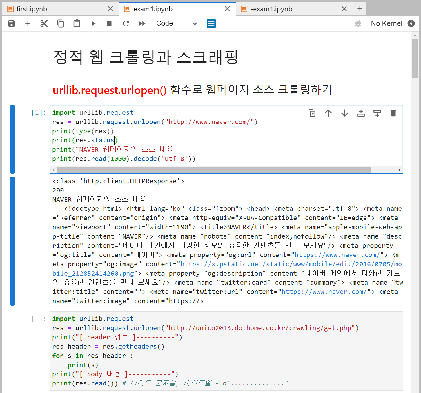 ++ 파이썬 / 네이버 (소스코드 웹 스크래핑) ++