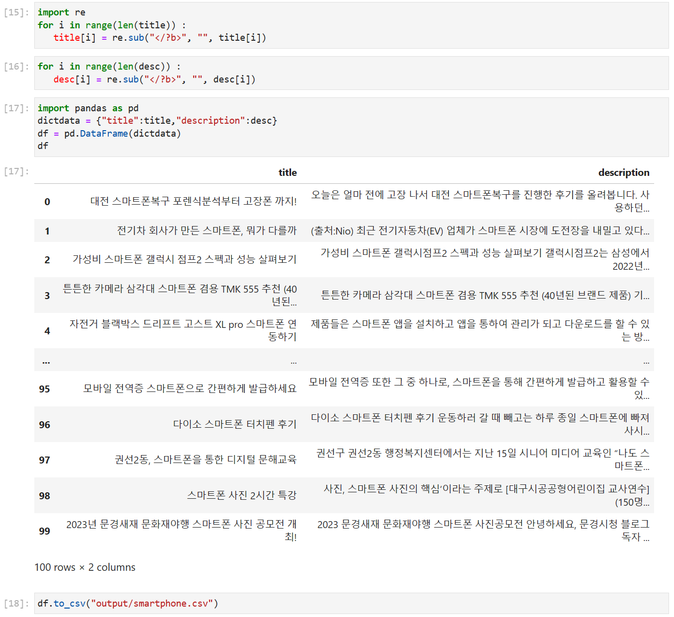 ++ 파이썬 / Query - 웹크롤링 & 데이터 전처리 ++