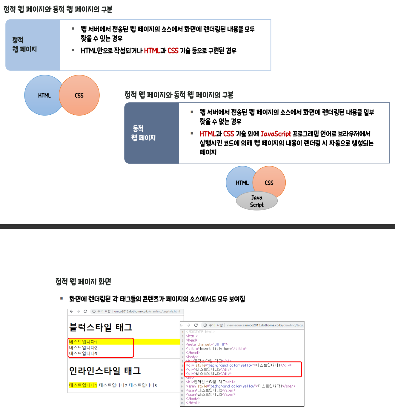(정적 웹페이지: HTML + CSS / 동적 웹페이지: HTML + CSS + Jas)