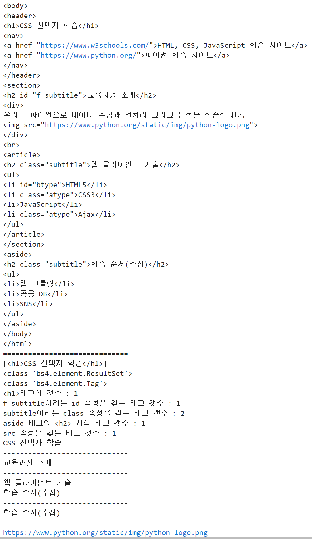 ++ 파이썬 & HTML & CSS & Jas / 빅데이터 웹크롤링 ++