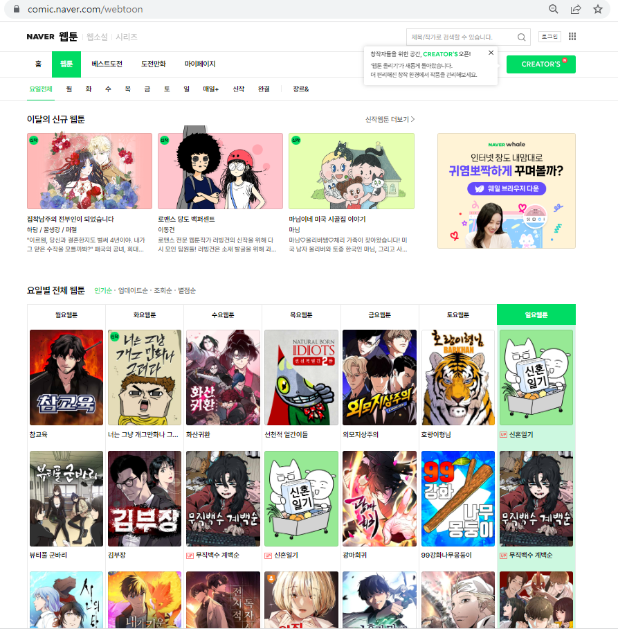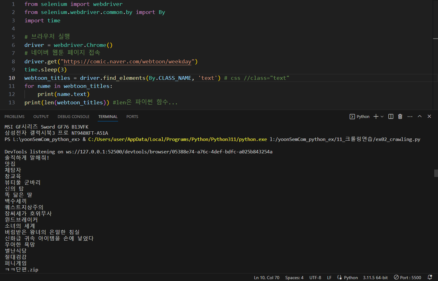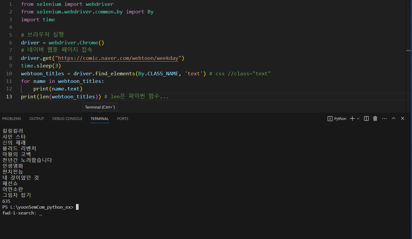 [CSS Class 선택자 이용 - 네이버 웹툰 제목 리스트 (635개) 가져오기]