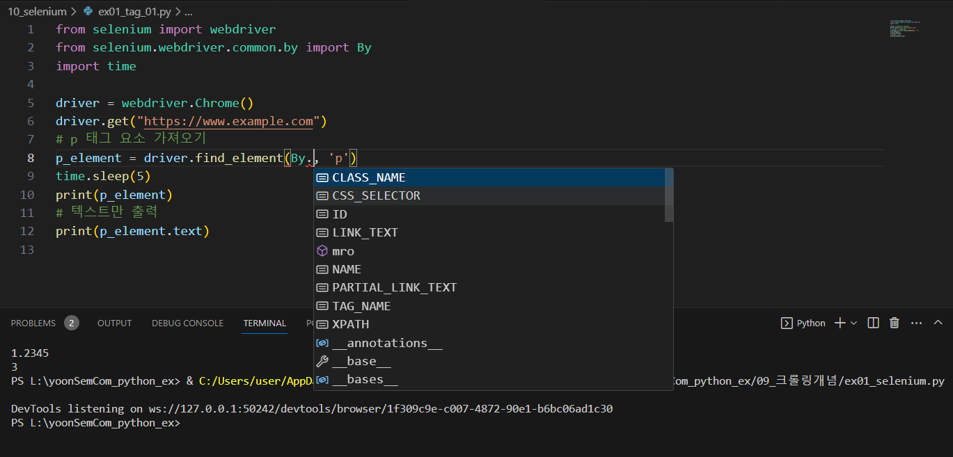 파이썬 패키지 - 터미널 / 설치 명령어: pip install selenium