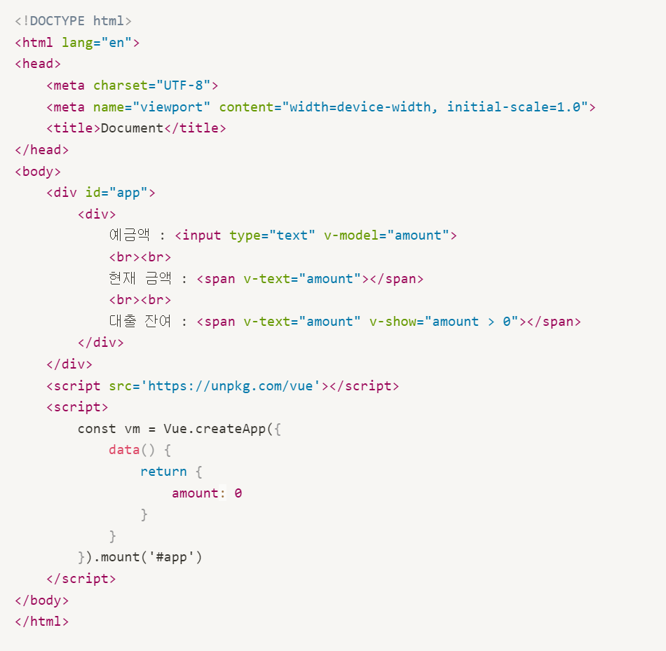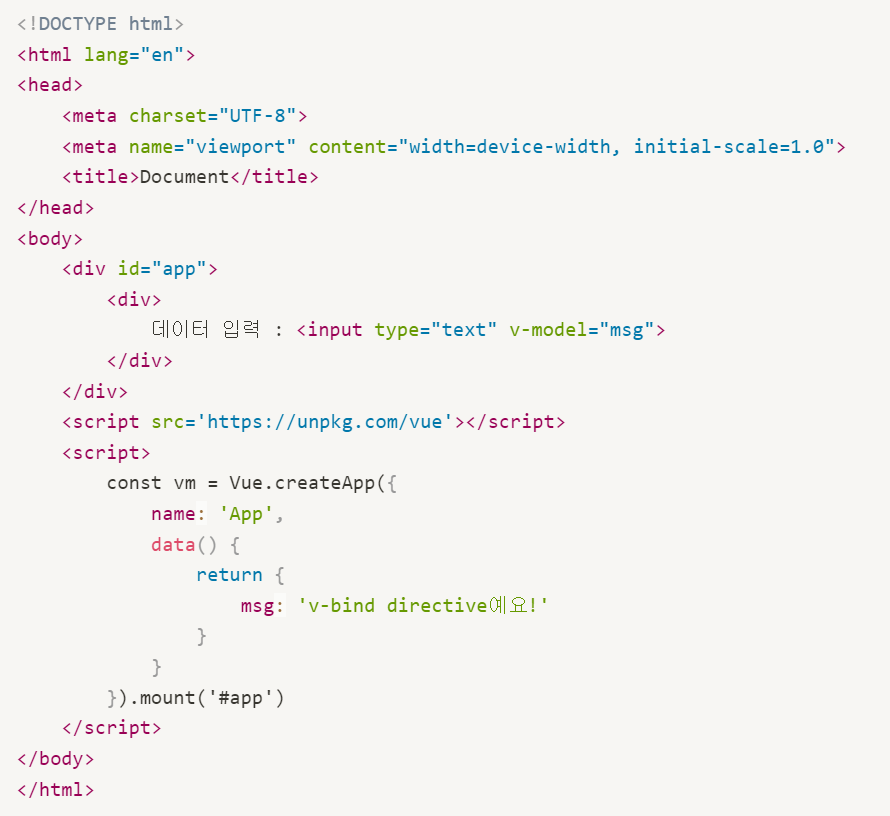 데이터 입력 : <input type="text" v-bind:value="msg">