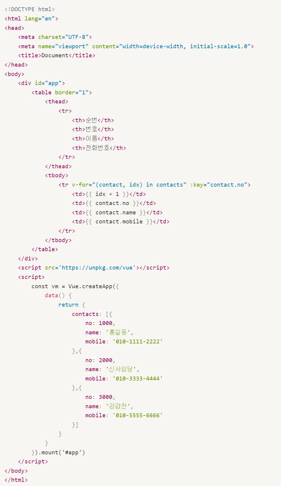 <tr v-for="(contact, idx) in contacts" :key="contact.no">