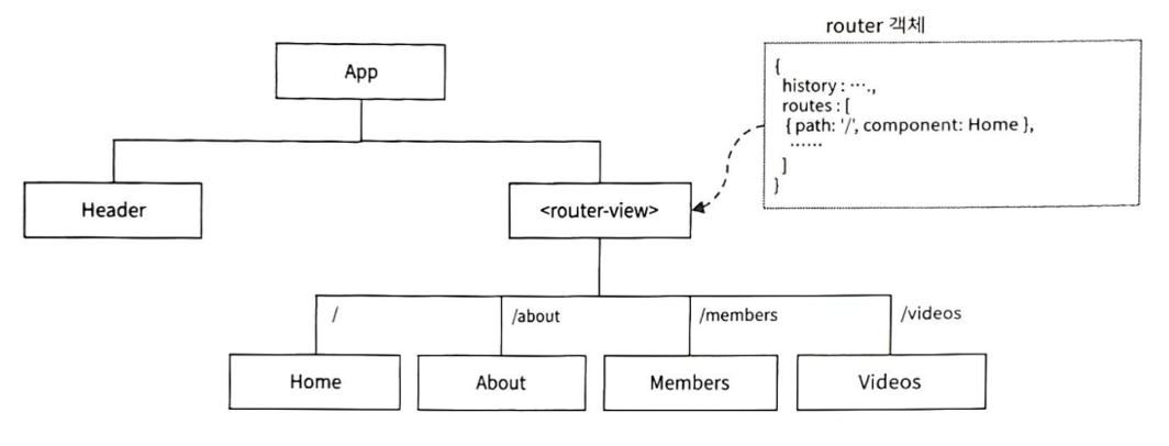 createRouter() 함수를 호출할 때 전달하는 인자 객체의 history 속성에는 사용할 라우팅 모드를 지정하고 routes 속성에는 요청 경로에 따라 어떤 컴포넌트를 렌더링할지를 지정합니다.
