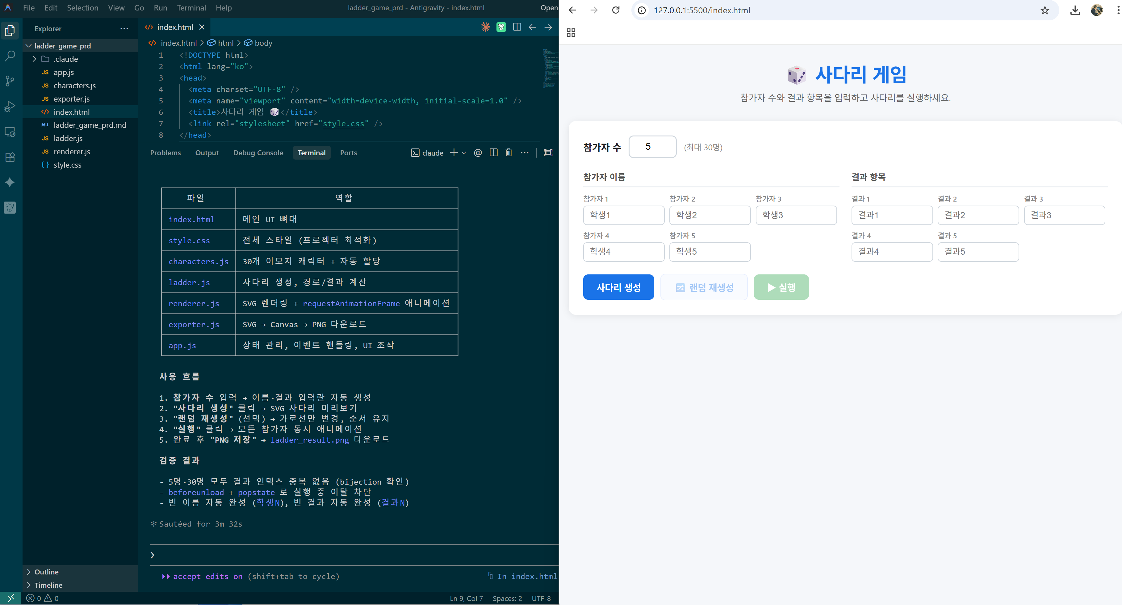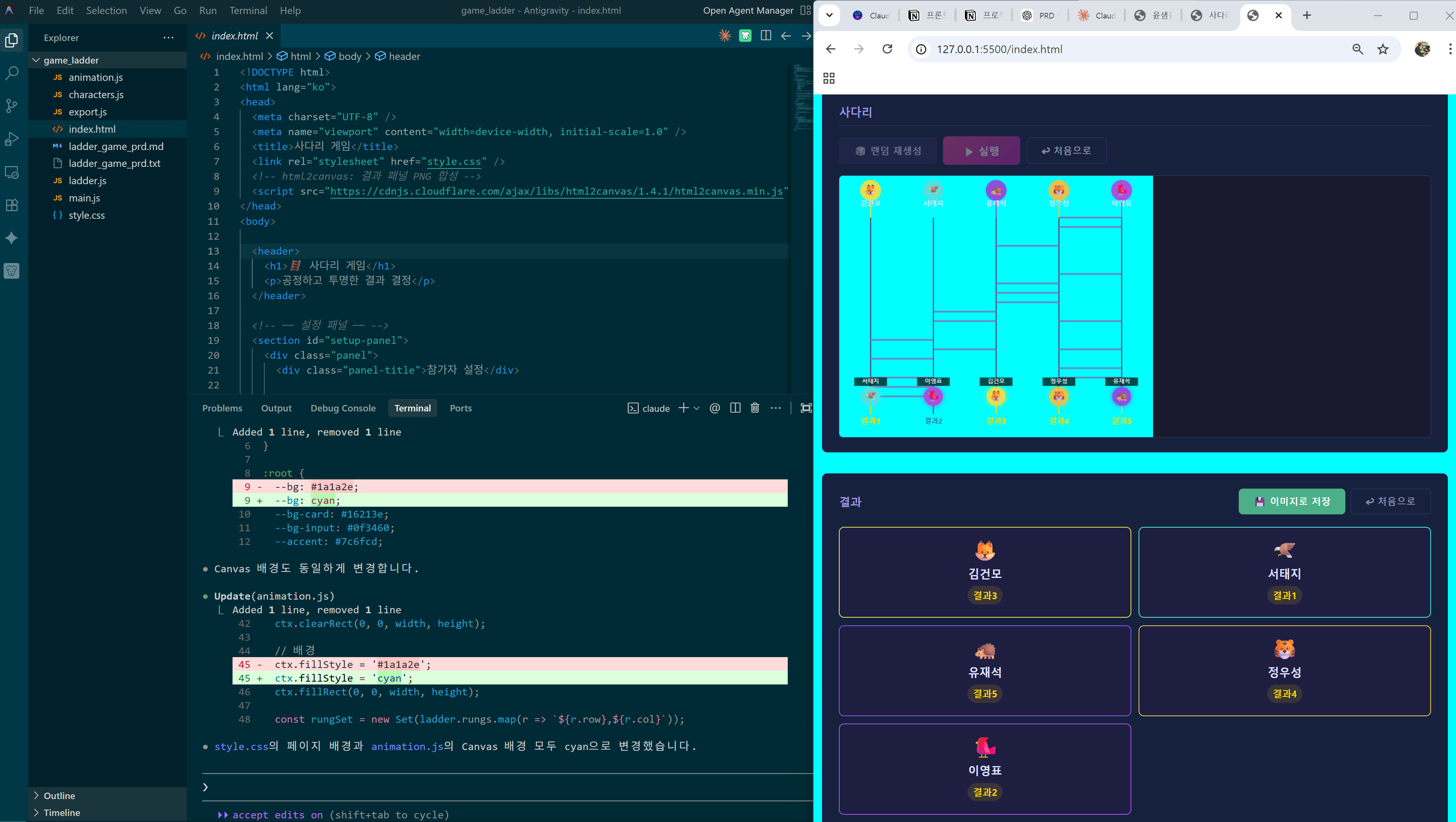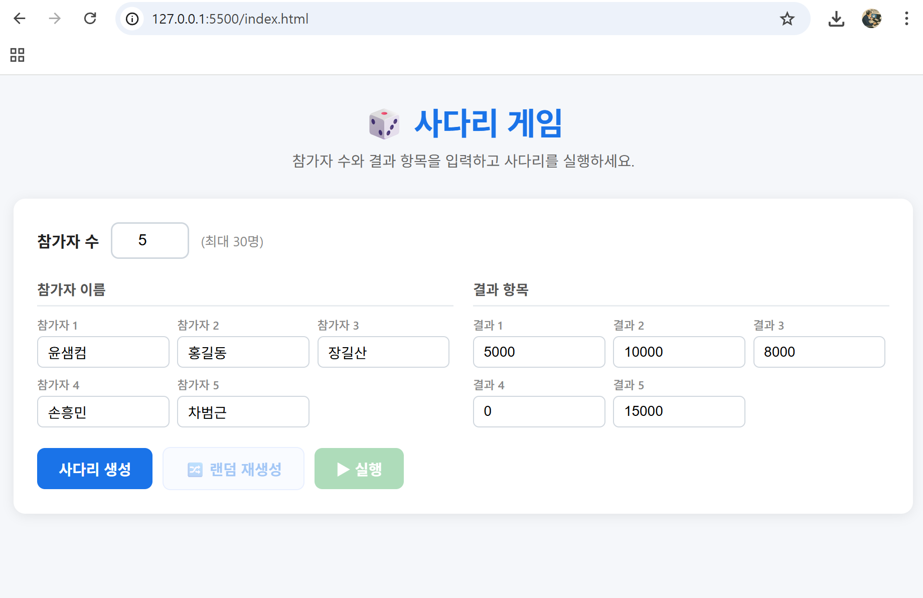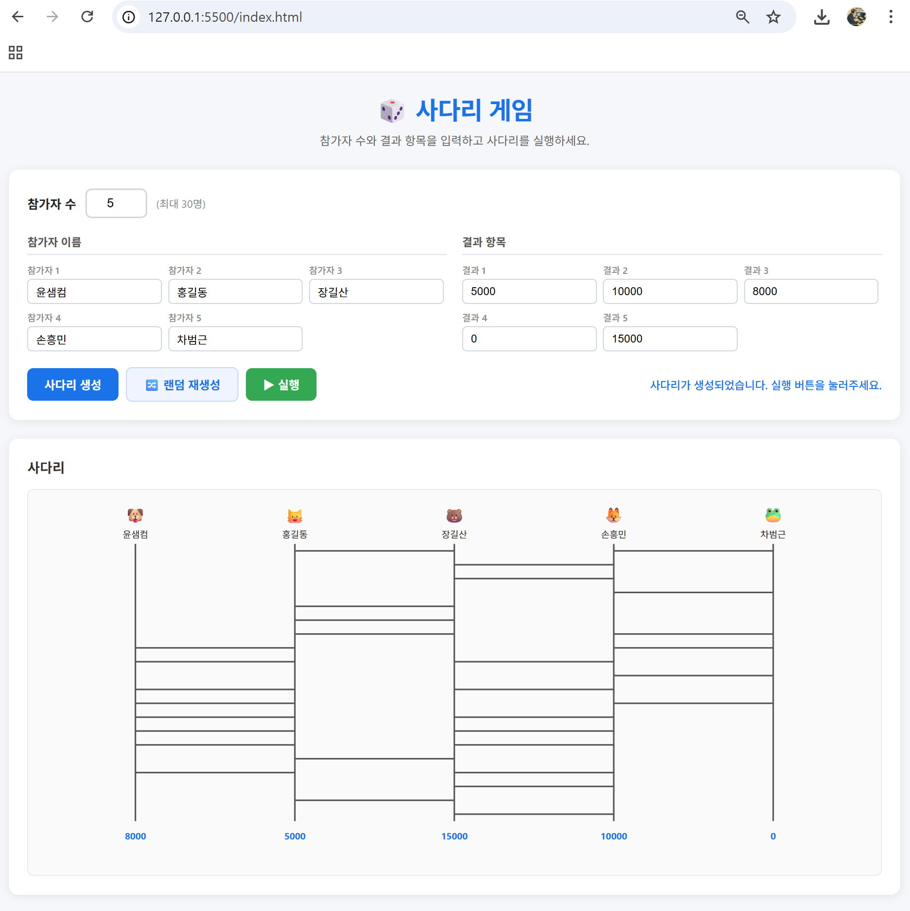 ++ 바이브 코딩 / 사다리타기 게임 프론트엔드 UI구현 ++