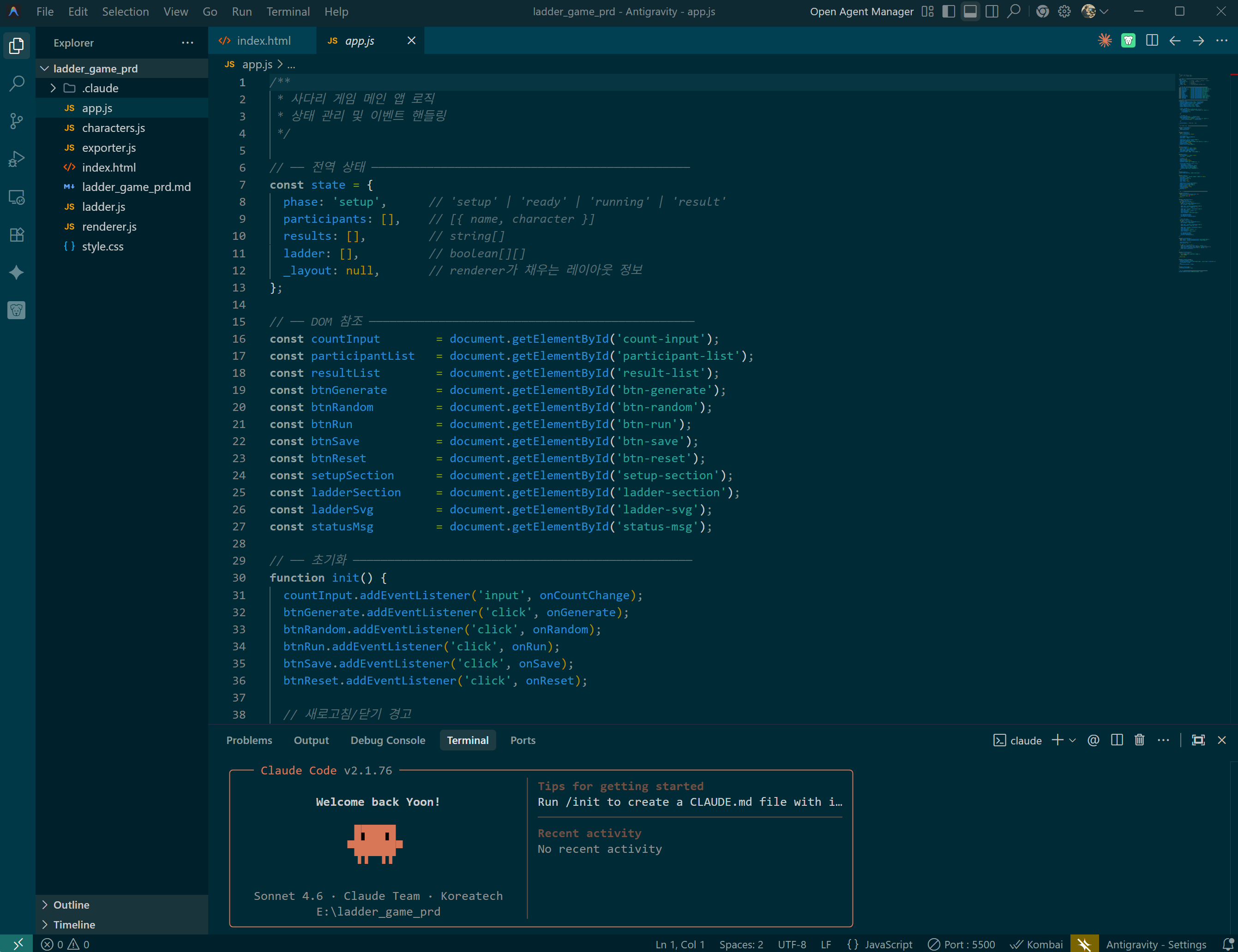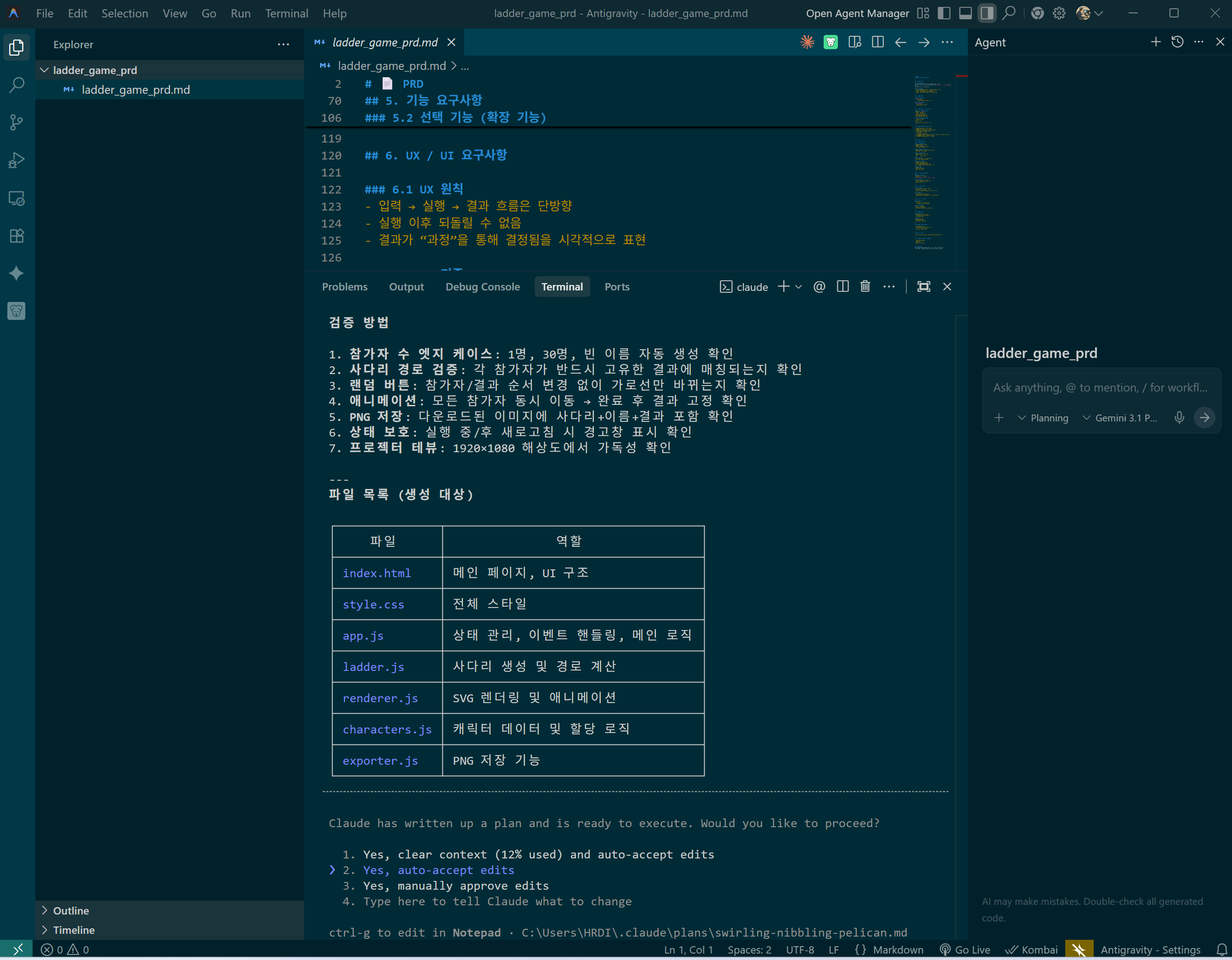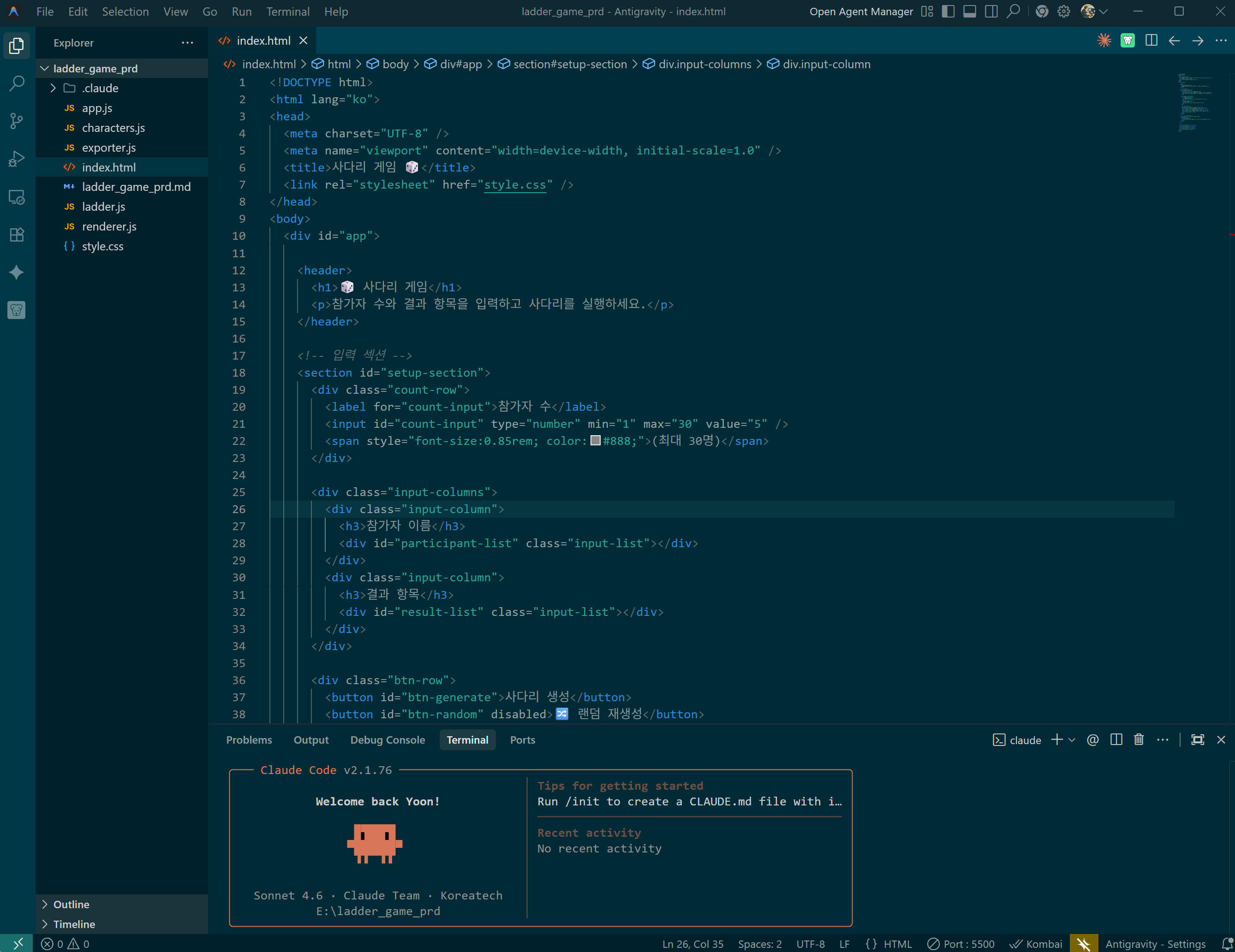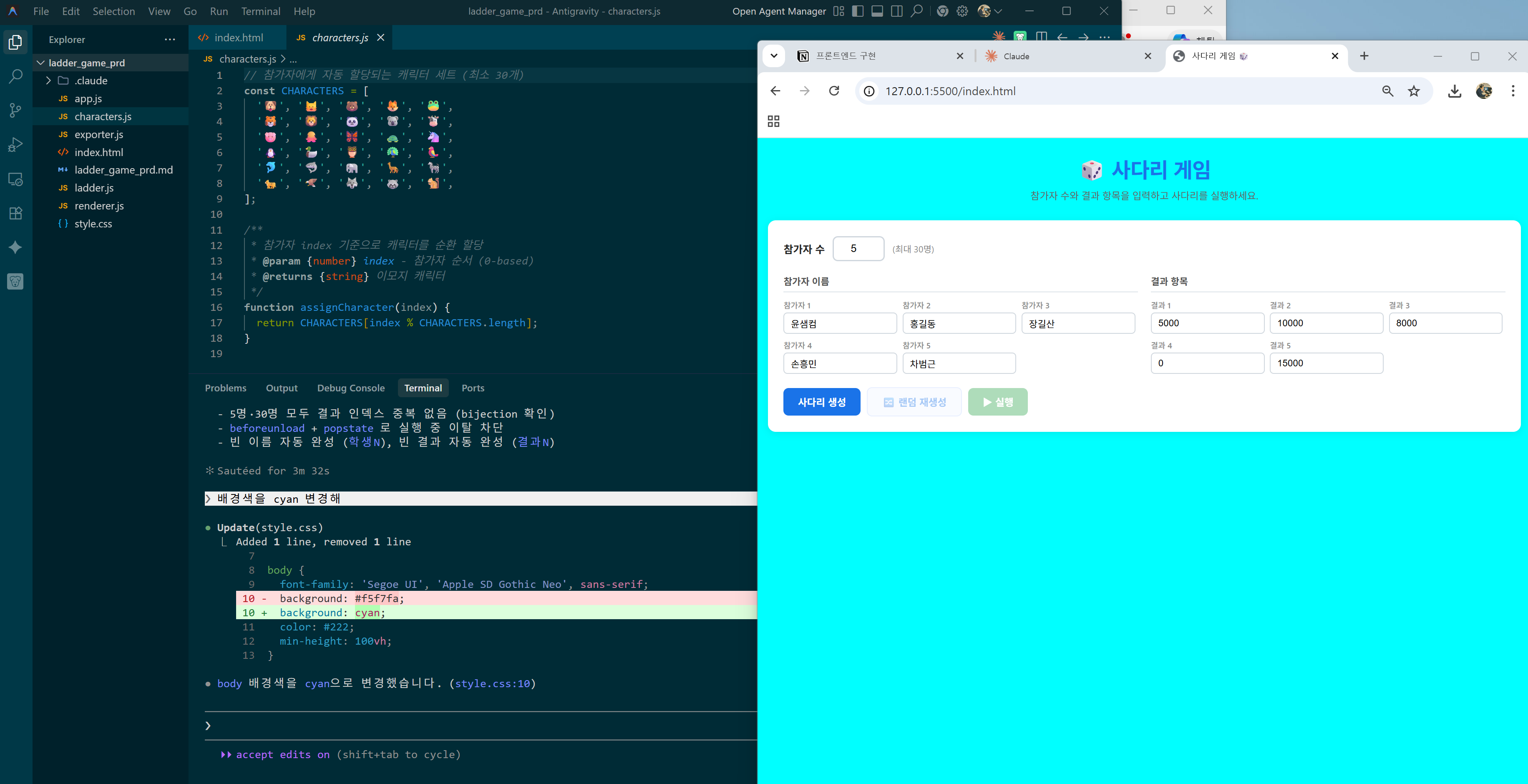 ++ 바이브 코딩 / 사다리타기 게임 프론트엔드 UI구현 ++
