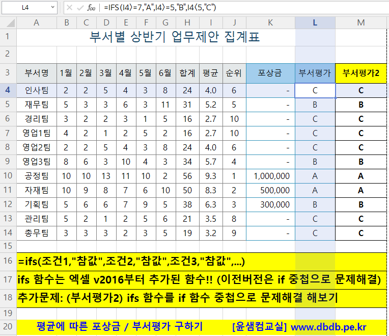 수정!! (순위에 따른 포상금 / 부서평가 구하기) edyoon.tistory.com