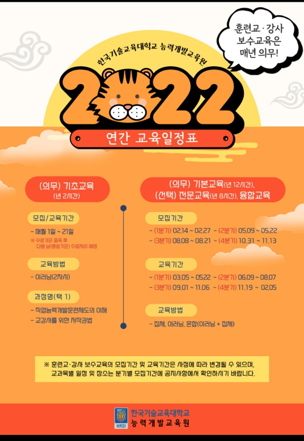 [한국기술교육대학교 - 직훈교사 전공보수교육 일정]